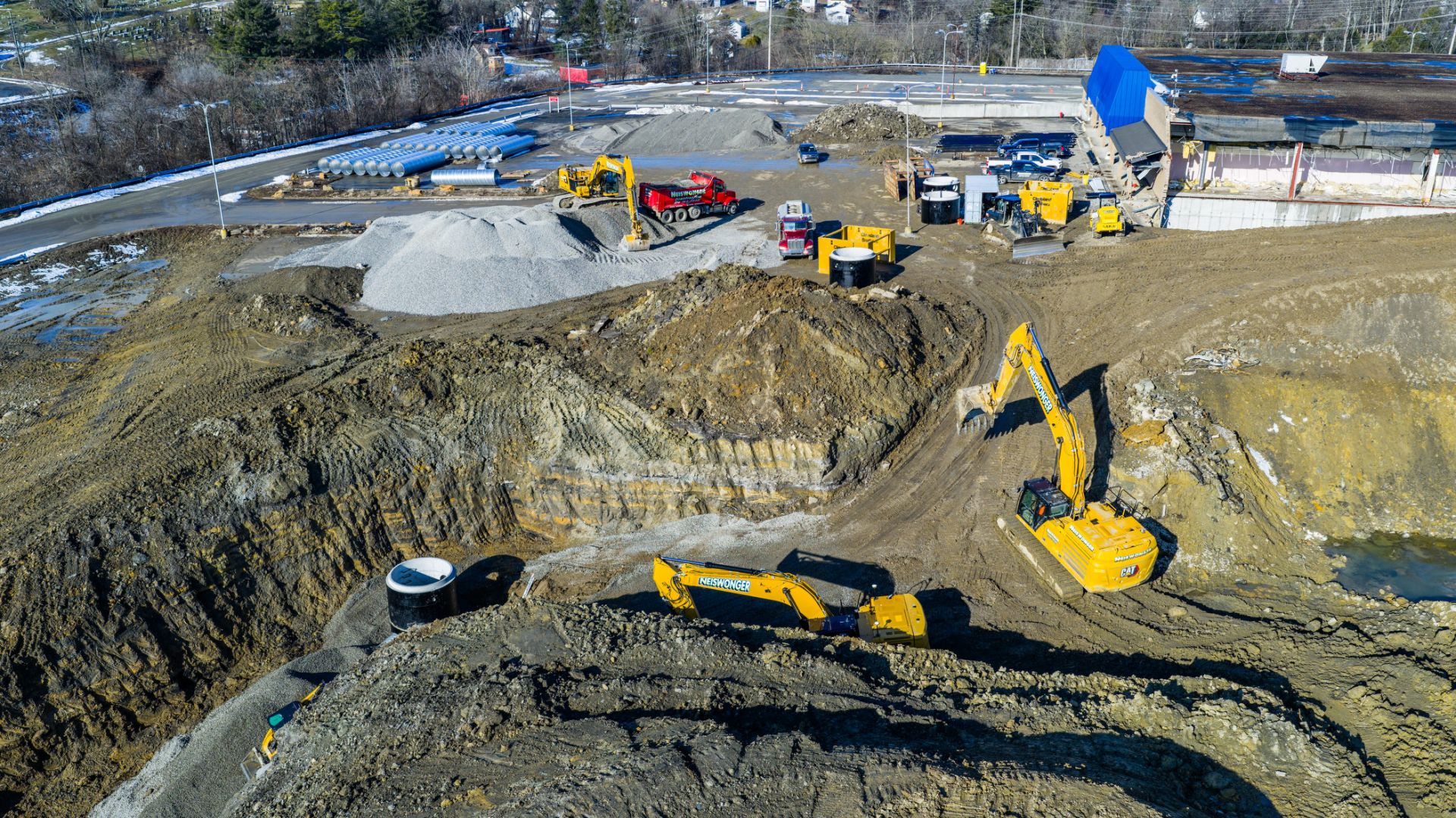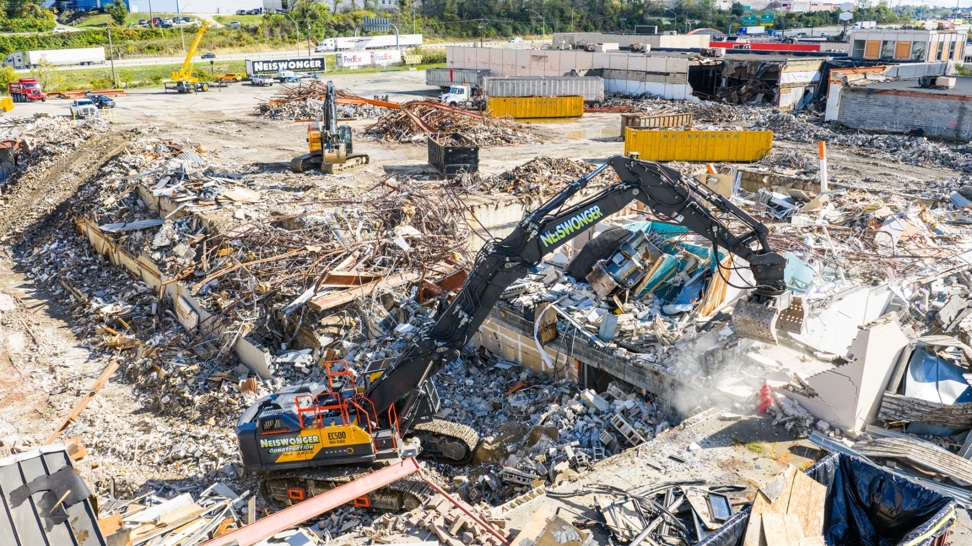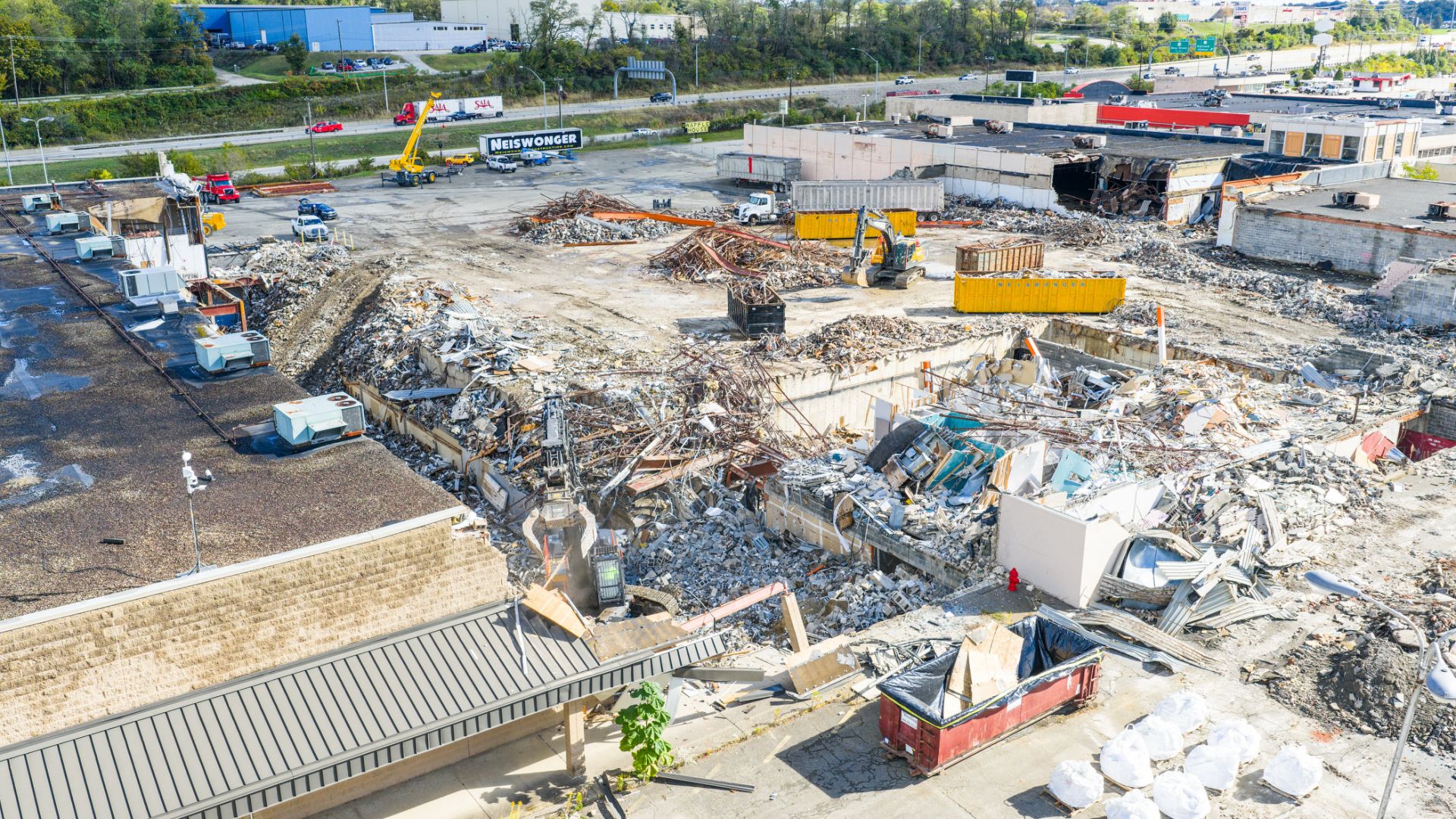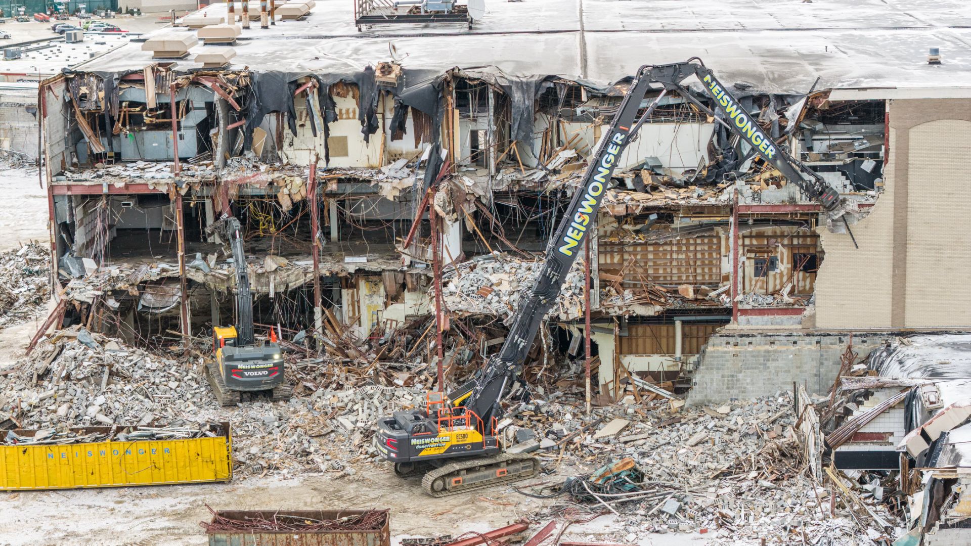 Neiswonger Construction is leading the demolition of Washington Mall as the site is prepared for future redevelopment. The project is being completed in phases, with crews carefully working around remaining structures and active areas while maintaining a strong focus on safety and efficiency.