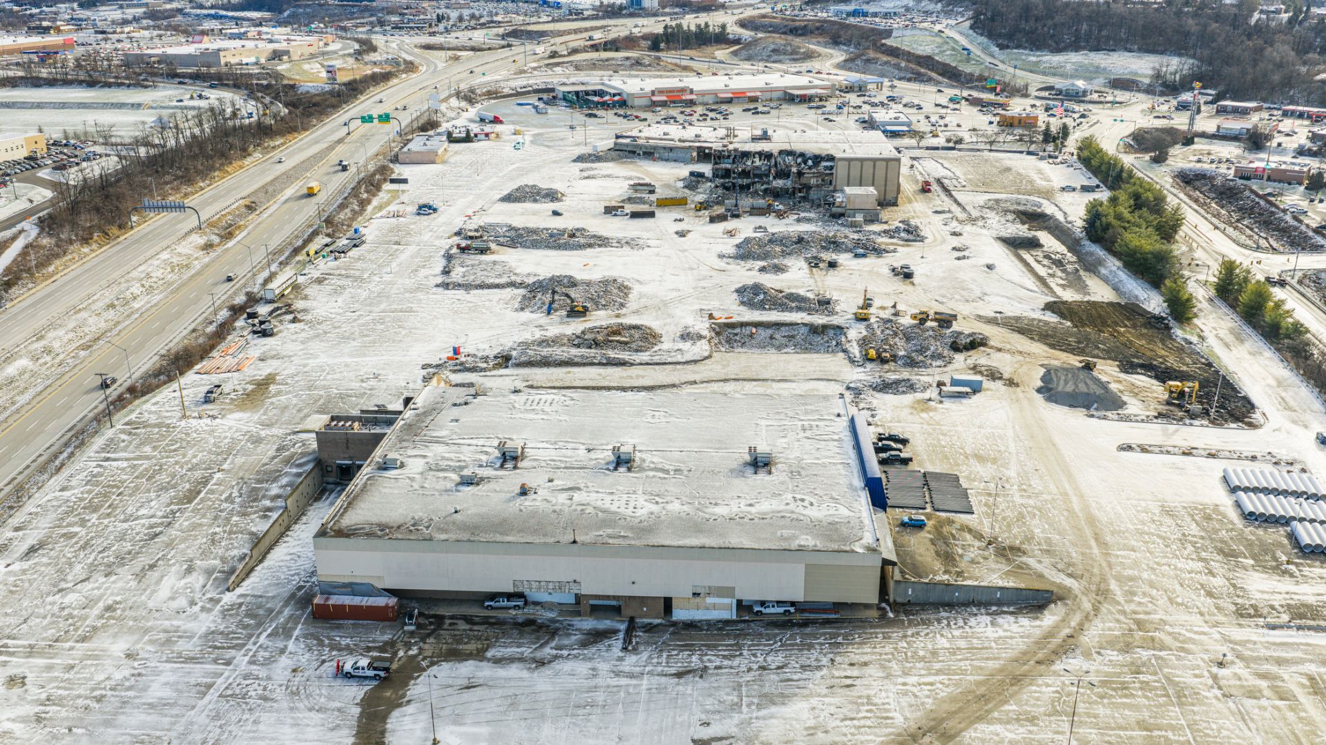 With much of the mall now removed, work continues on the remaining sections along with on-site material processing and site preparation. As the project moves through its final stages, the transformation of the property is well underway, clearing the way for what comes next.